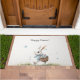 Welcome friends and family to your home with the delightful charm of this Easter doormat featuring a fluffy white bunny on a joyful spring stroll. The illustration depicts the bunny wearing a blue checkered sweater and carrying a woven basket brimming with beautifully decorated eggs across a grassy meadow. With its clean white background and "Happy Easter!" greeting, this high-quality mat adds a touch of whimsical storytelling to your entryway, making it perfect for spring celebrations and egg hunt gatherings.