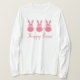 Pink Easter Bunny hooded t-shirt for celebrating has Easter holiday greeting in pink.