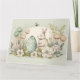 This Easter greeting cards features a delightful watercolor illustration of a cute Easter rabbit surrounded by spring flowers. The playful design is rendered in a charming line art style against a soft, light green background, giving it a fresh and vibrant look. These cards are perfect for sending warm wishes to loved ones during the Easter season. This card is customizable, you can edit each text or to delete them if you prefer to hand-write.