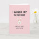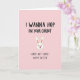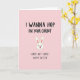 This greeting card features a soft pastel pink background that sets a flirty, lighthearted tone 🌷. Centered is a simple white bunny head with tall ears lined in pale pink, tiny black dot eyes, and a small pink nose and mouth that reads like a teasing little grin 🐰. The bunny sits between two lines of casual, thick black lettering that feels like it was quickly drawn with a marker. Across the top, the text reads “I WANNA HOP ON YOUR CARROT,” leaning into a cheeky double meaning that feels like a wink between close friends or sweethearts. Under the bunny, a second line says “SORRY NOT SORRY, HAPPY EASTER,” keeping the joke going while still nodding to the holiday. The flat, minimal shapes keep everything easy to read, and a faint shadow under the bunny head gives it a slight lifted look. The top and bottom text are both in black, standing out strongly against the pink field, with the bunny’s pink ear details and nose tying the center together. The layout is symmetrical, with the bunny head centered and the words evenly spaced above and below on the pink background.