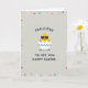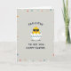 This card shows a bright yellow chick peeking out from a white cracked eggshell, giving the scene a friendly, flirty little moment as if it’s popping up to greet someone special 🐰. The chick has dark rectangular sunglasses and a tiny pointed beak, adding a cool, teasing look that feels like an inside joke between close friends. Along the broken edge of the shell, a soft blue zigzag pattern adds a neat graphic accent without taking attention away from the character. Above the chick, the word “EGG-CITED” curves in dark lettering, sitting like a headline at the top. Near the bottom, “TO SEE YOU. HAPPY EASTER.” appears in the same dark text, centered and spaced to feel easy to read. The background stays a soft gray, letting the yellow, white, and blue stand out clearly, while the chick’s confident pose keeps the mood light 🐇. Around the outer area, small round confetti dots in coral, light blue, orange, and white float near the edges.