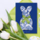 This delicious Easter greeting card features a watercolor painted Easter bunny cookie with pretty frosting featuring blue chinoiseries design.