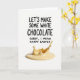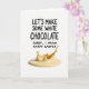 This greeting card keeps the look simple and witty, pairing a wide white background with a cheeky Easter line that reads, “LET’S MAKE SOME WHITE CHOCOLATE SORRY, I MEAN HAPPY EASTER.” The text sits across the upper portion in thick black, hand-drawn lettering, leaving plenty of open space around it. Below, a glossy pale yellow splash of creamy liquid rises from the lower third, curling into smooth peaks and rounded crests that feel a bit like a shared treat between close friends 🐰. The bright lighting makes the surface shine, as if the “chocolate” is freshly poured and caught mid-motion. A soft, stretched shadow trails from the base, adding depth while keeping the scene airy and uncluttered. The contrast between the black lettering and the warm, buttery liquid adds a flirty, teasing tone, like an inside joke exchanged with a grin 🐇. The splash forms three main ripples, with the tallest peak leaning slightly to the right against the stark white field.