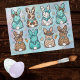 These cute Easter bunnies are all dressed up for the latest line dance or country and western shindig. With their cute bows, cow print hats, stripes, and turquoise marble print fur, they're all ready for a great party or for a fun Easter day. This delightful pattern features eight unique bunnies, each adorned with stylish patterns like leopard, cow print, and zebra stripes, along with cute bows and hats. Tiny stars, carrots, eggs, and flowers surround the cute little rabbits. Perfect for adding an extra special layer of surprise to any gift bag or box during the spring holidays, lining Easter baskets, or for decoupage or craft projects. The soft pastel color palette, highlighted by a beautiful teal and pink background and subtle gold accents, adds a touch of whimsy and elegance.