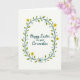 This design shows a soft off-white background with an oval wreath of teal-green vines curling around the center like an embrace 🌷. In the middle, dark teal cursive-style lettering reads “Happy Easter to a great Co-worker,” giving the message a friendly, close-knit tone. The text sits centered within the wreath, with the words evenly stacked and spaced for easy reading. Slender winding stems form the frame, dotted with many small emerald leaves that feel fresh and springlike. Bright yellow, star-shaped flowers appear at intervals around the wreath, adding sunny points of color that keep the eye moving. Near the bottom, two pastel blossoms—one sky blue and one soft peach—sit close together like a gentle nod between friends 🐰. The teal-green vines loop smoothly to complete the oval, with the paired pastel flowers anchoring the base.