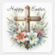 Happy Easter Cross with Easter Lilies Envelope Seal Square Sticker