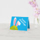 Cute blue Easter Bunny post card with real pickleball. Custom text front and inside.