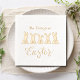 Happy Easter Cute Bunnies Personalized Name Foil Napkins Real Foil Stamped Paper Napkins features the text "Happy Easter" in elegant script typography accented with cute bunny rabbots and personalized with your name or custom text. Perfect to celebrate Easter in style. Created by Evco Studio www.zazzle.com/store/evcostudio