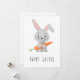 This Happy Easter Holiday Card features illustration of cute Easter Bunny holding big carrot. Design is done in gray and warm colors: orange, pink, and green. Back of the card features leftover of the carrot eaten by Bunny. Send this card to your friends and loved ones to celebrate beautiful spring holiday - Easter.