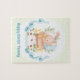 Cute Bunny personalized jigsaw puzzle in blue and green. Easily personalize the text. Comes with a cardboard carry-case with puzzle image printed on lid! - Kate Eden Art.