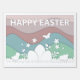 Happy Easter, cute chicks, easter eggs on grass Sign