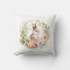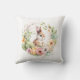 Watercolor Easter Bunny in the floral wreath Throw Pillow with vintage vibes. Matching items are available in my store - Kate Eden Art.