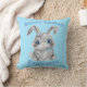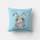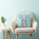 Happy Easter Cute Gray Bunny Rabbit Blue Name Throw Pillow