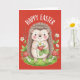 Happy Easter Cute Hedgehog Holding Strawberry Card