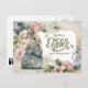Happy Easter. Watercolor Cute Old-Fashioned Bunny with Flowers design Easter Postcard with personalized family name. Matching cards, favors and gifts available in the Holidays / Easter Category of our store.