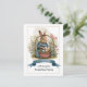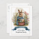 Happy Easter. Watercolor Spring Flowers, Cute Old-Fashioned Bunny with Eggs design Easter Postcard with personalized family name. Matching cards, favors and gifts available in the Holidays / Easter Category of our store.