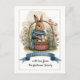 Happy Easter. Cute Old-Fashioned Bunny with Eggs Holiday Postcard