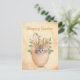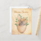 Happy Easter Vintage greeting card, illustration with a cute bunny kitty, basket with eggs, and flowers.