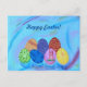 These pretty postcards feature my painting of seven colorful Easter eggs decorated in pointillism designs on an abstract background. The text, Happy Easter, is written in medium blue, and can be easily customized on the template form. The eggs are in colors of red, purple, orange, green, blue, pink, and yellow. The background color is light blue with wisps of blue, purple, yellow, and lavender. Thank you for shopping CherylsArt on Zazzle.
