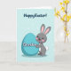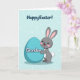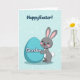Designed with a simple digital illustration style, this Easter card features a cheerful gray bunny with big shiny eyes, perked ears, and rosy cheeks, smiling as it hugs a large teal egg close like a treasured gift 🐰. The bunny’s gentle squeeze and relaxed posture suggest affection, as if sharing a sweet moment with someone special. Near the top, “Happy Easter!” is written in deep blue lettering, centered and easy to read against the cool background. Across the teal egg, the word “Grandson” appears in rounded white lettering with a dark blue outline, placed prominently in the middle. The background is a light cerulean blue, sprinkled with scattered white dots that resemble soft confetti. Subtle outlines and even lighting keep the scene calm and friendly, with the bunny’s small white tail peeking out behind. White dots of different sizes drift across the blue backdrop, surrounding the bunny and egg like a gentle shower 🌷.