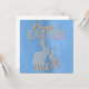 A beautiful blue card with orange silhouettes of rabbits in dotted style.
