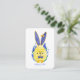 Brighten up someone's day with this cute & cheerful note card featuring watercolor illustration of a sunshiny yellow Easter Egg painted as an adorable rabbit surrounded by blue Muscari blossoms and a butterfly. Text states "Happy Easter" in hand writing script.