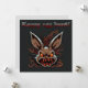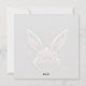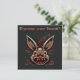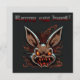 This Easter card is rather quirky and humorous, with a zombie-looking bunny who looks like he came straight out of a horror movie. He has yellow eyes and a devilish laugh. The background of the card is a dark color, which reinforces the scary atmosphere of the scene.