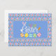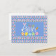 A Happy Easter Typography Greetings Postcard In Blue With Easter Gnomes And Colored Eggs