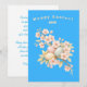 An original elegant watercolor Easter card featuring delicate cherry blossoms and soft pastel Easter eggs nestled among spring botanicals on a fresh sky blue background. The refined floral composition offers a sophisticated and timeless alternative to traditional Easter designs. The serene blue palette paired with blush pink blooms and ivory eggs creates a calm and joyful springtime feeling. Ideal for friends, mothers, sisters, and anyone who appreciates beautiful botanical art.