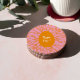Happy Easter floral egg. Cute orange egg with floral abstract burst. Retro Easter paper coaster