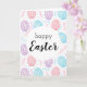 A cute card for your Easter celebration, featuring the words "Happy Easter" on the front with a floral pastel Easter egg pattern design and a customize-able interior greeting.