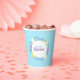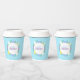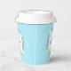 Happy Easter paper cups decorated with flowers and eggs on blue background