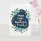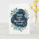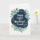 This design shows a deep navy oval with softly textured edges centered on a white background, framed like a gentle embrace between friends 🌷. Inside the oval, the greeting is set in white flowing lettering, with “Happy Easter” placed first and “FOR A Wonderful Friend” arranged beneath it in the same light color for a warm, close-to-the-heart feel. Around the oval sits a leafy wreath that curls inward as if leaning in for a friendly hug 🐰. Four sky-blue, five-petaled flowers stand out evenly around the ring, each with an orange-yellow center that feels like a small spark of attention. Green leaves and thin brown branches weave between the blooms, creating a cozy, gathered look rather than a stiff circle. Small yellow buds and scattered golden dots are tucked through the greenery, adding little moments of brightness that guide the eye back to the message. The navy center contrasts sharply against the white space, while the blues, greens, and sunny accents stay soft and springlike, and the wreath includes tiny yellow buds and gold speckles among the leaves.
