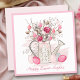 Beautiful watercolor spring flowers and Easter eggs Easter card in pink. Easily personalize this card with your own text. - Kate Eden Art.