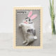This hilarious fat and fluffy kitty laying on the floor in a hopping position as she wears bully ears and a tail is a cute way to wish any one a Happy Easter!