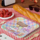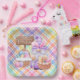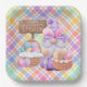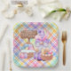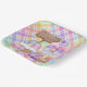 A Festive And Colorful Square Paper Plate Designed With A Happy Easter Gnome And Pastel Colors