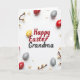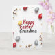 This card features an overhead layout with the greeting “Happy Easter Grandma” centered as the main focus, set in deep red and dark gray lettering on a white background. The words sit comfortably in the middle, like a gentle note placed where it’s easiest to notice, with a friendly, close-to-home feel 🌷. Around the text, decorative eggs are arranged in a tidy ring, suggesting a caring touch in how each piece is set near the next. Several eggs are rich red with white dots and small floral patterns, giving them a cozy, traditional look. A single yellow egg with white horizontal stripes adds a sunny contrast, while a few smooth gray eggs soften the scene with a calm, understated balance. Small spring sprigs with pale yellow buds weave between the eggs, adding a tender, just-blooming detail that feels like a quiet show of affection 🐰. Scattered straw stars add a rustic texture, and the white space keeps every red, yellow, and gray detail sharply visible.