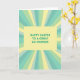 This design shows a pale yellow rectangle centered on the front, like a softly glowing panel that draws your eye right in. In the middle of that panel, teal sans-serif lettering reads “HAPPY EASTER TO A GREAT CO-WORKER,” arranged in stacked lines with even spacing for an easy read. The layout feels friendly and a little affectionate, like a warm note shared between people who enjoy working side by side 🐰. From behind the panel, a sunburst pattern spreads outward in long rays, creating a sense of shared energy and togetherness. The rays alternate in spring shades of aqua, mint green, and gentle lime, with occasional pale yellow streaks that echo the center. Subtle shifts in stripe width add motion, as if the background is quietly radiating toward the edges 🌷. The corners and borders are filled with those radiating lines, keeping the focus on the centered message while the pastel rays fan out in every direction.