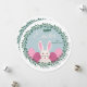 A unique, round, Easter card featuring a white bunny and Easter eggs all framed in a round, foliage window. The message of "Happy Easter" is pre-printed. (<a href='http://www.freepik.com/free-vector/floral-easter-egg-stickers-set_1045402.htm'>Designed by Freepik</a>). <br/><br/>The card is easy to customize with your wording, font, font color and choice of six paper types.<br/><br/>Not exactly what you're looking for? All our products can be custom designed to meet your needs at no extra charge.<br/><br/>Simply contact us at askcottonlamb@gmail.com<br/><br/>Coordinating products available: