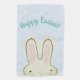 Happy Easter on one side of the flag with peeking bunny and Happy Spring with upside down peeking bunny on the back side of the flag. With customizable teal text on both sides of the flag on pale blue editable color background so you can personalize it and make it unique.