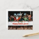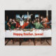 Happy Easter, Jesus! Funny Easter Postcard Remake of Last Supper of Leonardo, Easter theme with Jesus wearing rabbit ears, bunny mascot and two plates of Easter eggs