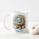 Celebrate Easter with this adorable mug featuring a cute lamb nestled in a wicker basket surrounded by colorful Easter eggs and spring flowers. Perfect for your morning coffee or tea during the Easter season. This charming design captures the joy and warmth of Easter with beautiful pastel colors and delightful details. Makes a wonderful Easter gift for family, friends, or anyone who loves seasonal decorations and cute animal designs.