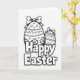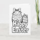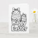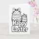 This card features a black-and-white illustration where two patterned egg shapes float near the top, like they’re gently drifting together in a friendly, affectionate way 🐰. The larger egg on the left is filled with wavy bands, small circles, and simple flower shapes, and it’s topped with a wide ribbon tied into a soft bow. The smaller egg on the right sits close by with dotted sections, flowing lines, and a repeating curved pattern, finished with a neat little bow that mirrors the one beside it 🐇. The close spacing and matching bows make the pair feel like companions, as if they’re sharing a quiet spring moment. Centered beneath them, the text “Happy Easter” is placed in a thick, rounded style with a dark outline and a light gray shadow that gives the letters a lifted look. The background stays plain white, letting the crisp black lines and gentle gray shading define the shapes without extra scenery. Small gray accents appear along the edges of the eggs and under parts of the lettering, while the bows sit at the top of each egg like tied fabric loops.