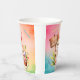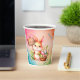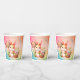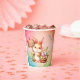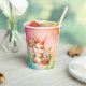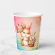 Happy Easter paper cups with a Bunny holding a basket with flowers and colored eggs