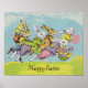 Happy Easter Pastel Running Rabbits Poster