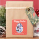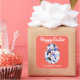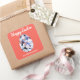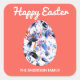 These custom stickers display the greeting 'Happy Easter' in white script typography, above a picture of a patterned Easter egg on a red background. Personalize with your name(s) in capital letters below the egg picture. The stickers make a stylish seasonal addition to party favor bags, cards and envelopes, egg collection bags and wrapped Easter gifts.