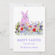 Happy Easter Pink Bunny Watercolor Wildflowers Holiday Card