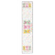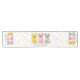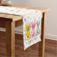 Fun, colorful table runner featuring three bunnies and pastel polka dots, for Easter festivities and events. Images are editable so, for instance, if you didn't want the three bunnies in the middle, you could clear that image.