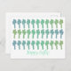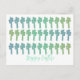 Happy Easter Postcard. Blue and Green trees on white paper.