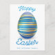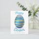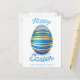 Personalized Happy Easter postcards with blue Easter egg and customizable text where you can add your family name on white background